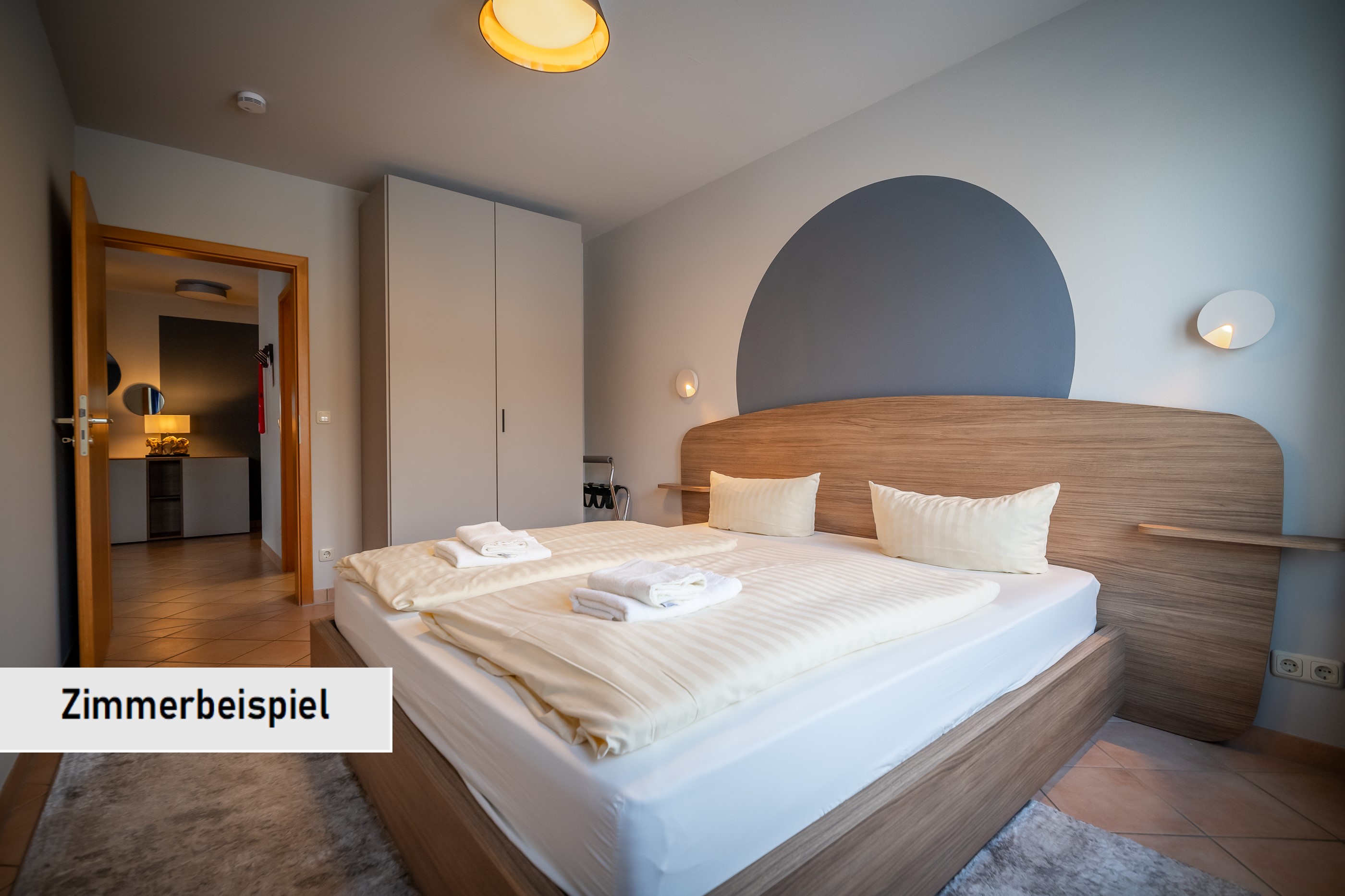 Die 2-Zimmer-Wohnungen verfügen über genügend Platz. Eine moderne, zeitlose Möblierung mit Sitzecke, ein Doppelbett mit Einzelmatratzen (90x200 cm) im Schlafzimmer, ein Bad mit ebenerdiger Dusche und ein Balkon gehören zur Ausstattung der Wohnungen.