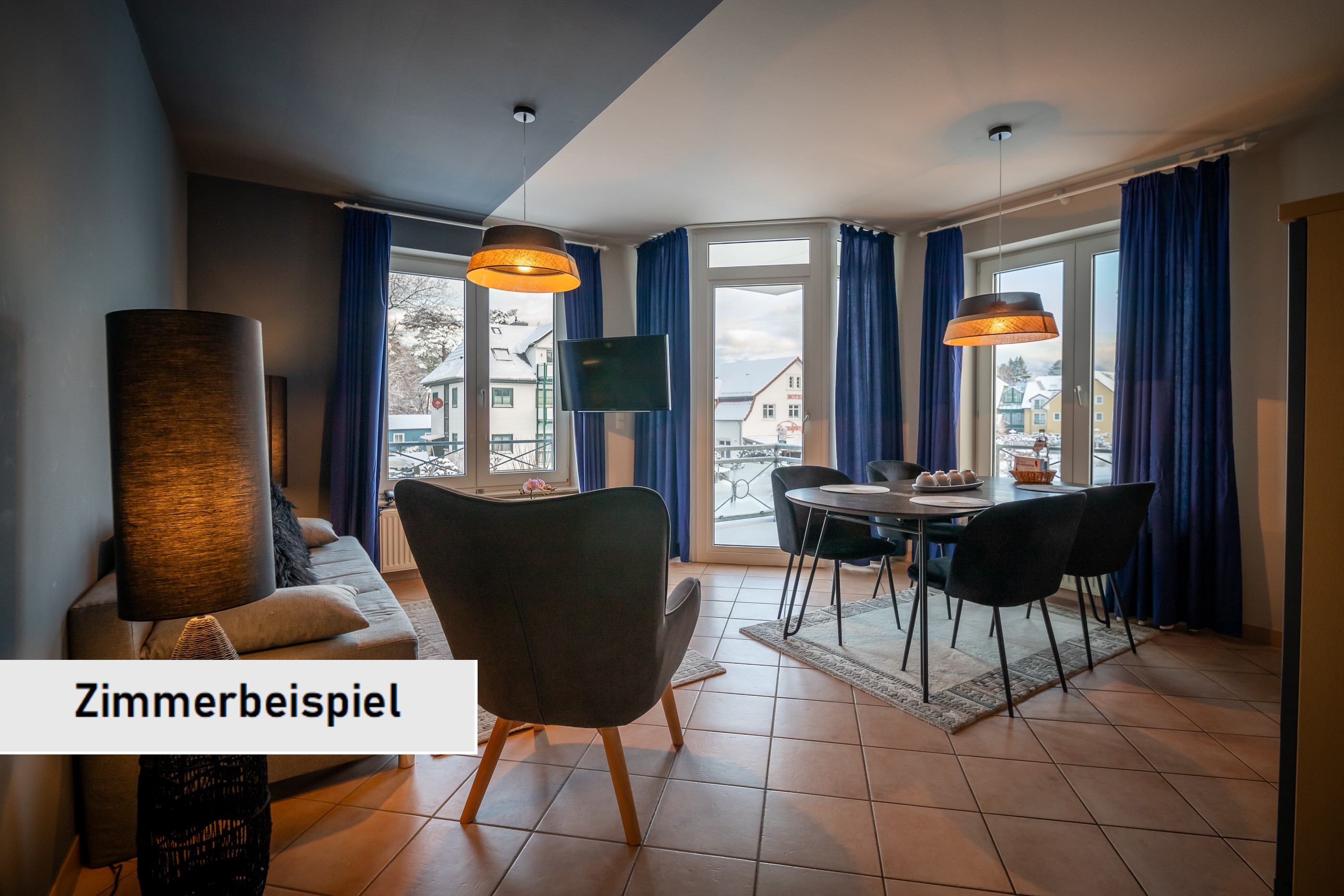 Die 3-Zimmer-Wohnungen bieten ausreichend Platz für 4 Personen. Die stilvolle und zugleich moderne Möblierung mit einer Sitzecke, einem Doppelbett im Schlafzimmer, einem Bad mit Dusche und einem Balkon gehören zur Ausstattung der gemütlichen Wohnungen. Teilweise verfügen sie auch über ein Etagenbett im Kinderzimmer und bieten somit Platz für bis zu 4 Personen.